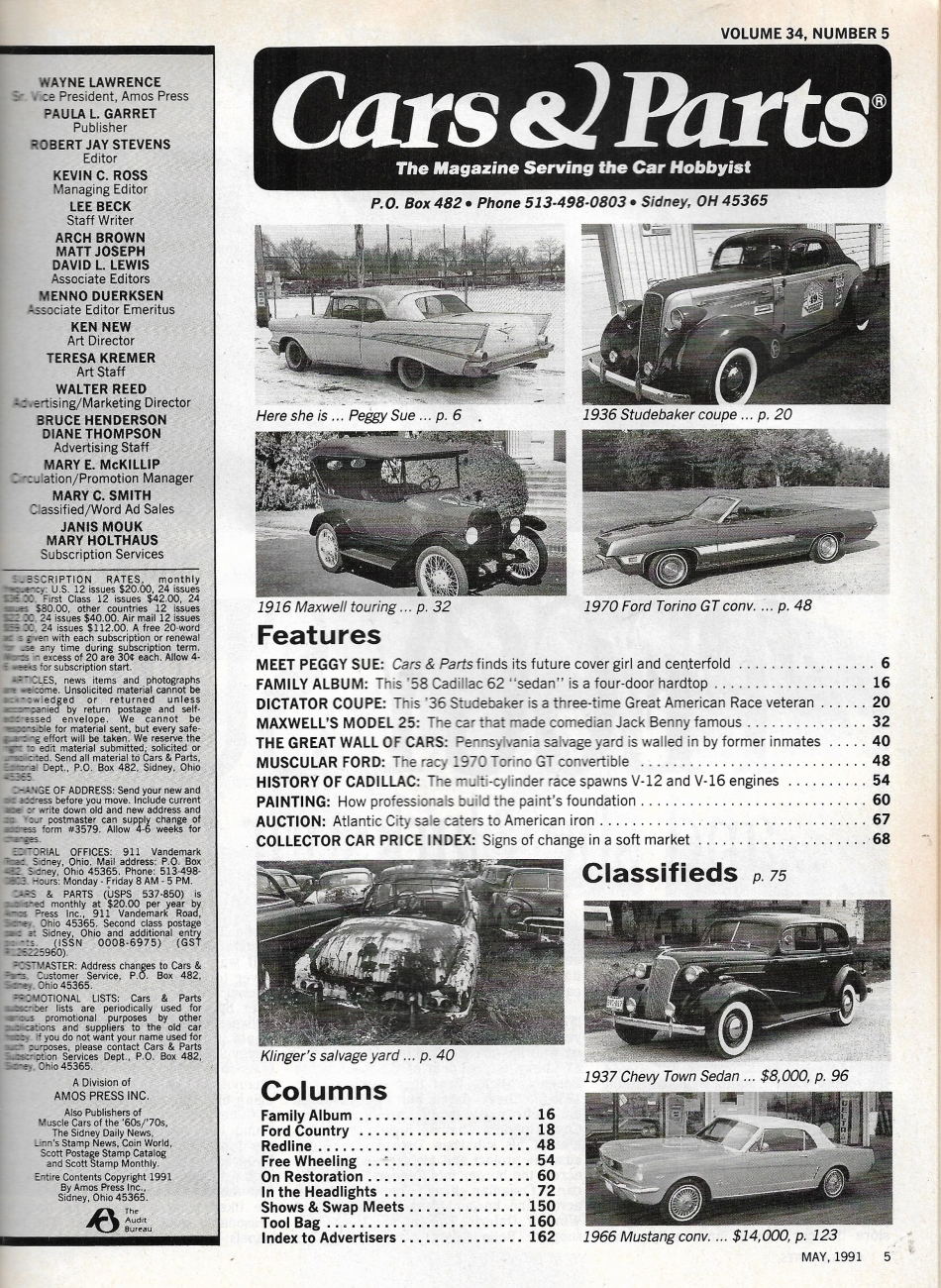 Reviews CARS & PARTS 1991 MAY - '70 FORD TORINO GT CONV, '36 STUDEBAKER DICTATOR COUPE