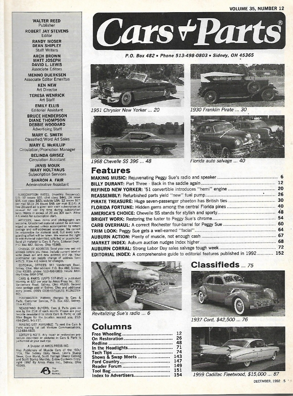 Reviews CARS & PARTS 1992 DEC - '68 CHEV SS 396, '51 CHRYSLER NY CONV, '57 CHEVY RESTO*