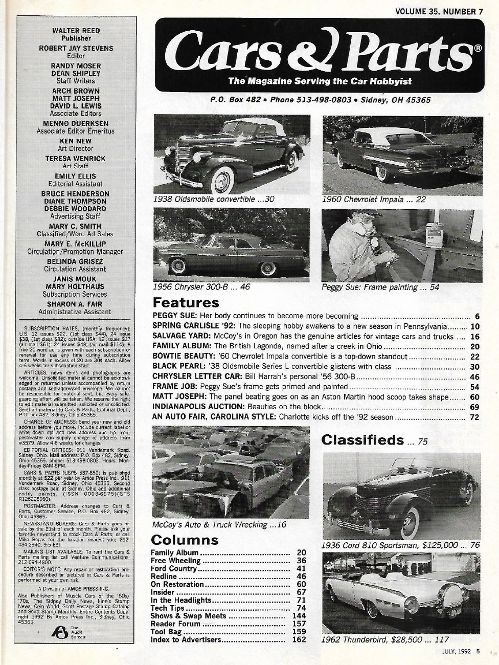 CARS & PARTS 1992 JULY - '56 CHRY 300-B, THOMAS FLYER '08 RACE, '39 LAGONDA