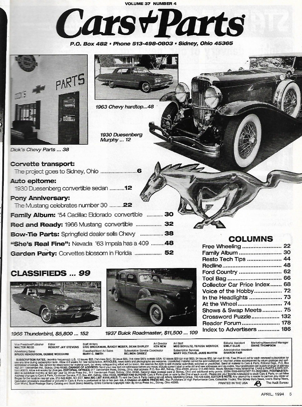 Reviews CARS & PARTS 1994 APR - '66 MUSTANG GT, '63 IMPALA 425 HP 409, '30 DUESENBERG