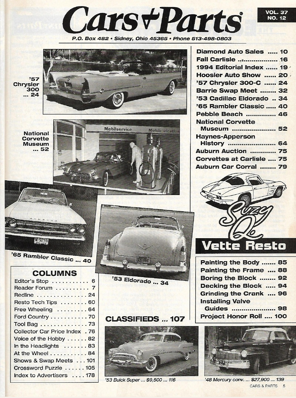 Reviews CARS & PARTS 1994 DEC - CORVETTE MUSEUM, '63 VETTE RESTO SUZY Q, '53 ELDORADO