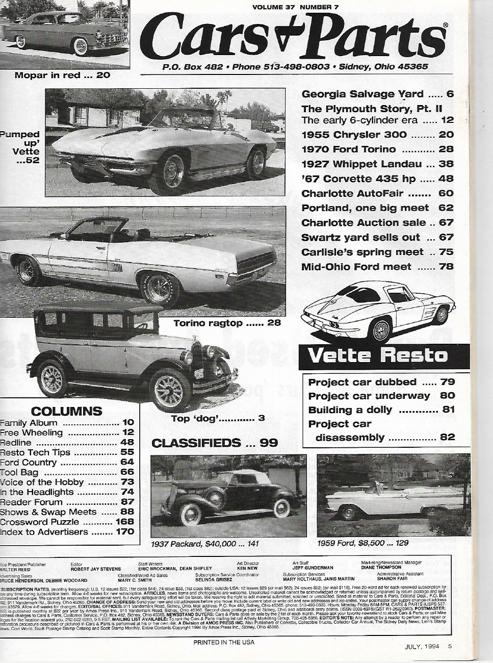 Reviews CARS & PARTS 1994 JULY - '70 FORD TORINO GT 351,'27 WHIPPET LANDAU, VETTE RESTO