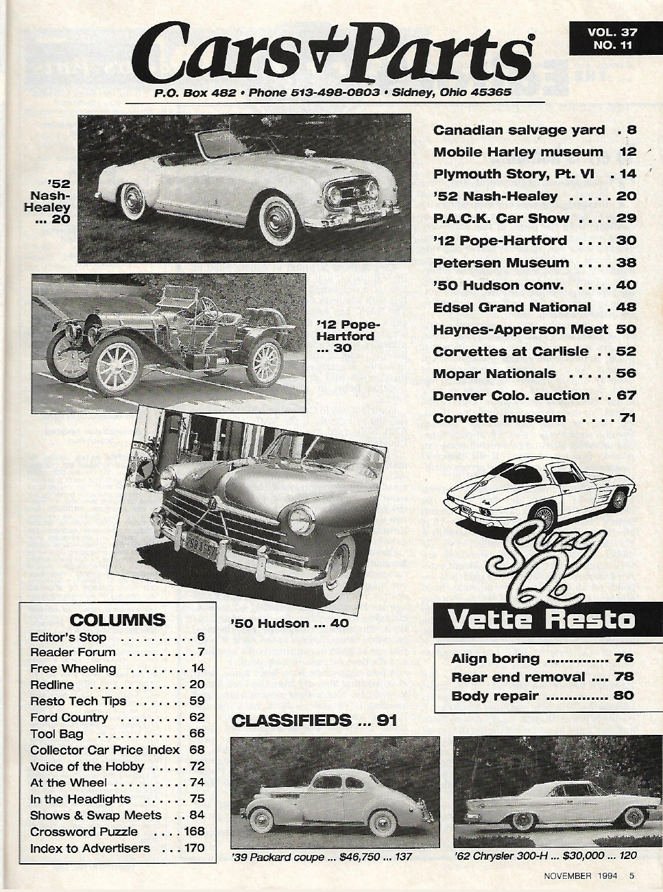 Reviews CARS & PARTS 1994 NOV - '52 NASH-HEALEY, '50 HUDSON, SUZY Q VETTE RESTO