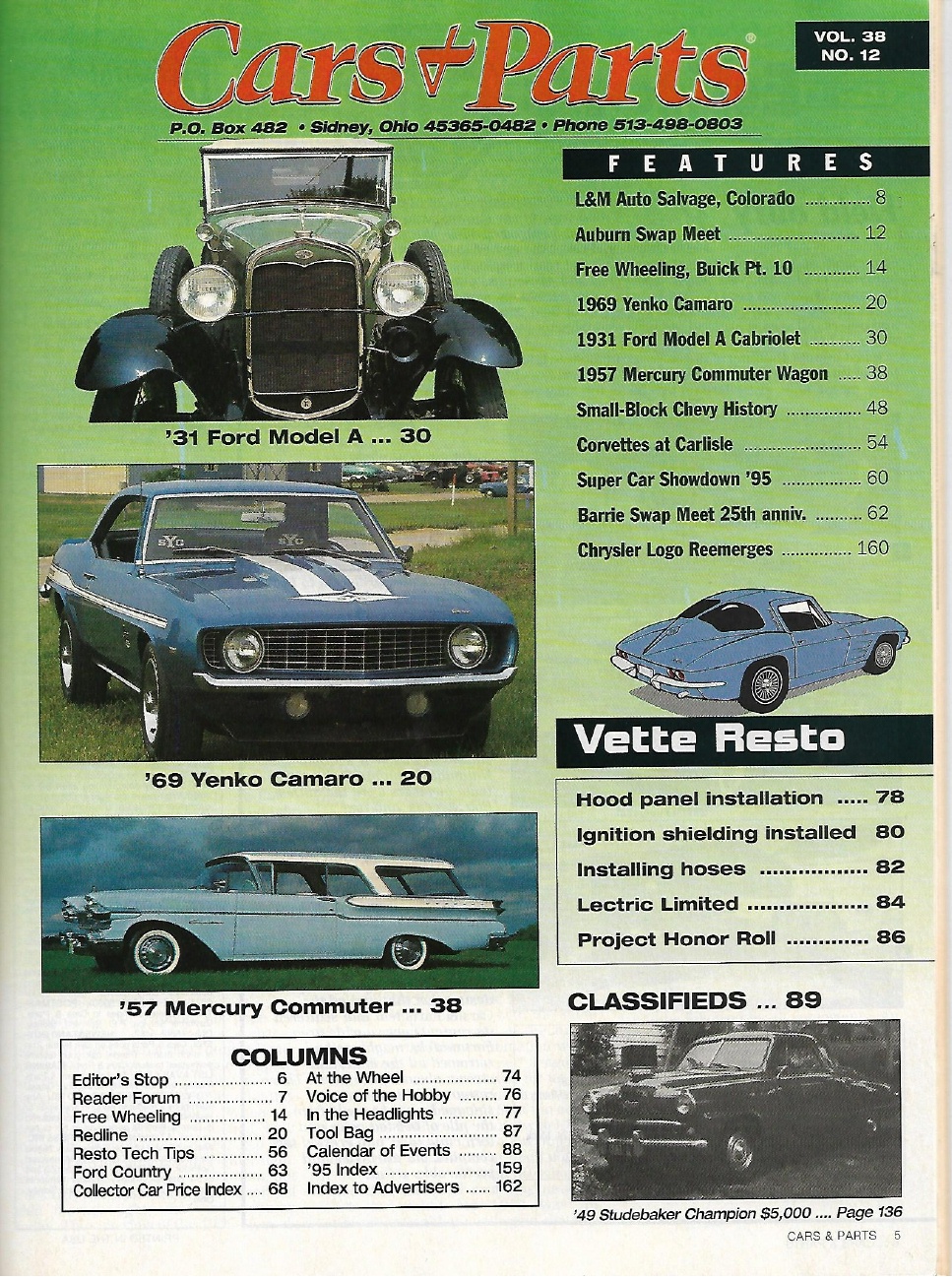 Reviews CARS & PARTS 1995 DEC - '69 YENKO CAMARO, '57 MERC WAGON, SUZY Q, '31 FORD A
