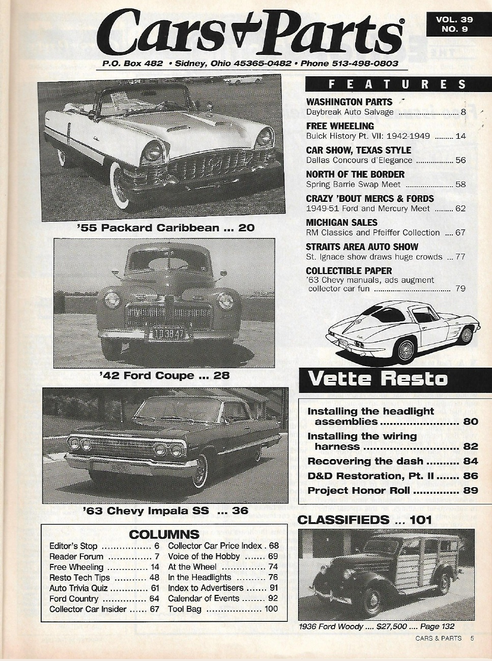 Reviews CARS & PARTS 1995 SEPT - '55 PACKARD CARIBBEAN, '42 FORD COUPE, '63 CHEVY SS