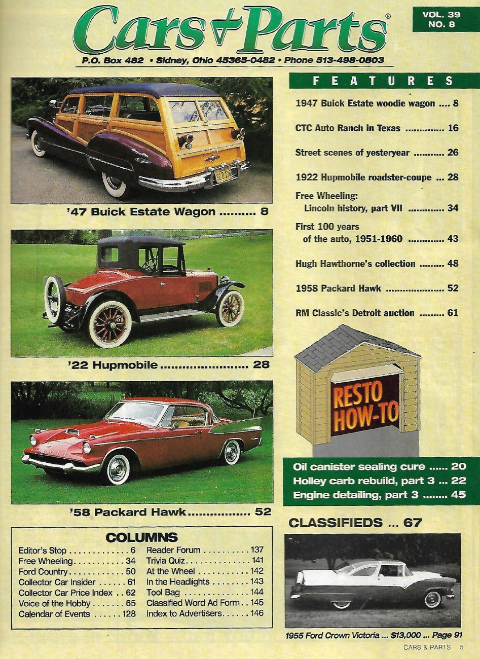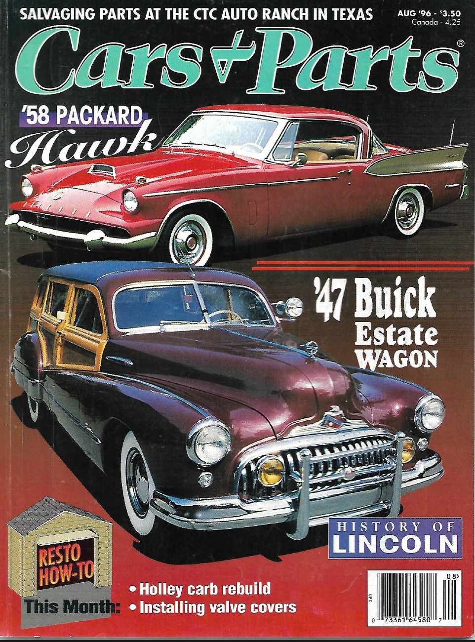 Reviews CARS & PARTS 1996 AUG - '58 PACKARD HAWK, '47 ESTATE WAGON, HIST OF LINCOLN