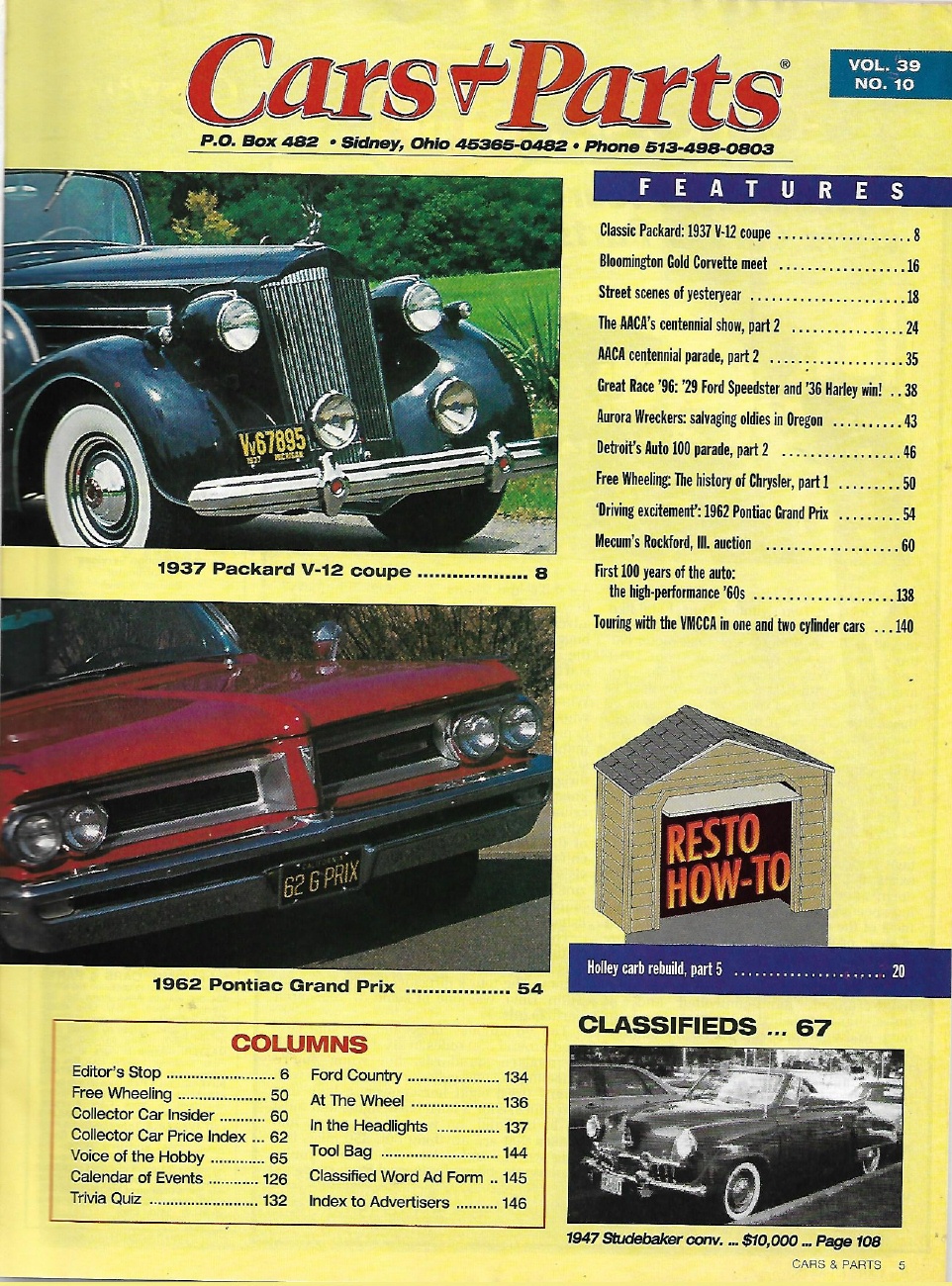 Reviews CARS & PARTS 1996 OCT - '37 PACKARD V-12 COUPE,'62 GRAND PRIX, HOLLEY CARB REDO