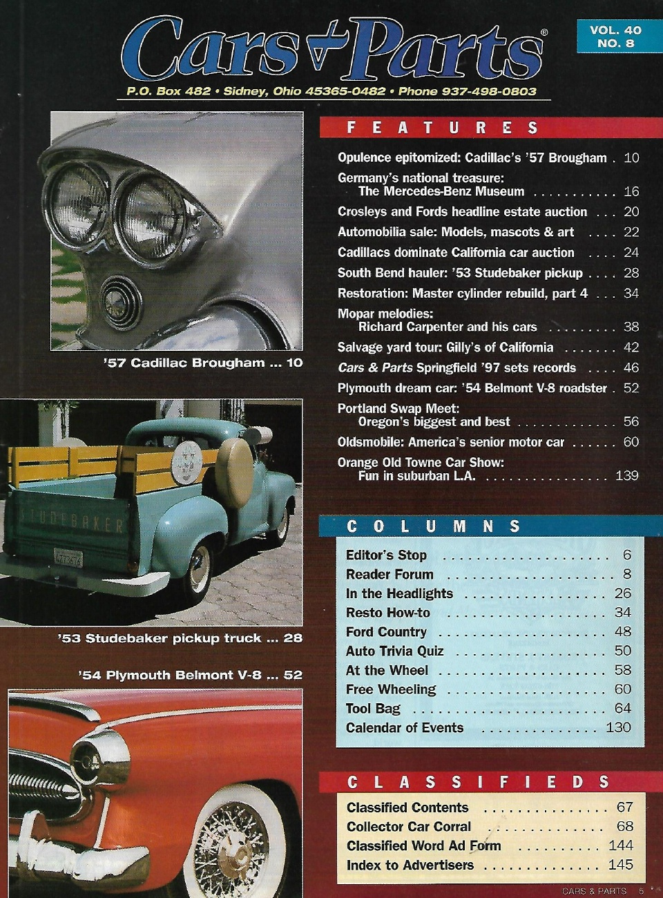 CARS & PARTS 1997 AUG - '53 STUDEBAKER PU, '54 BELMONT U-8,'57 BROUGHAM, MOPARS