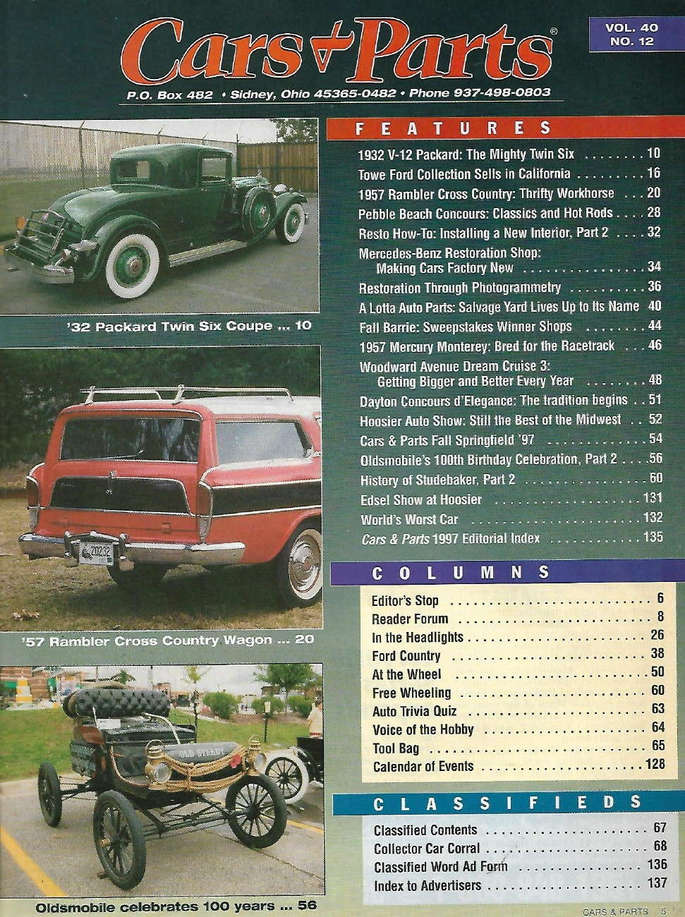 Reviews CARS & PARTS 1997 DEC - STUDE HIST, '57 RAMBLER CROSS COUNTRY, '57 MERCURY STOCK