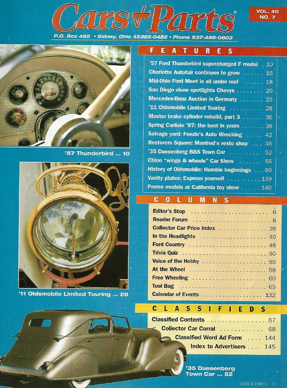 Reviews CARS & PARTS 1997 JULY - OLDS LIMITED, SUERCHARGED 'BIRD, DUESENBERG, BRAKE CYL