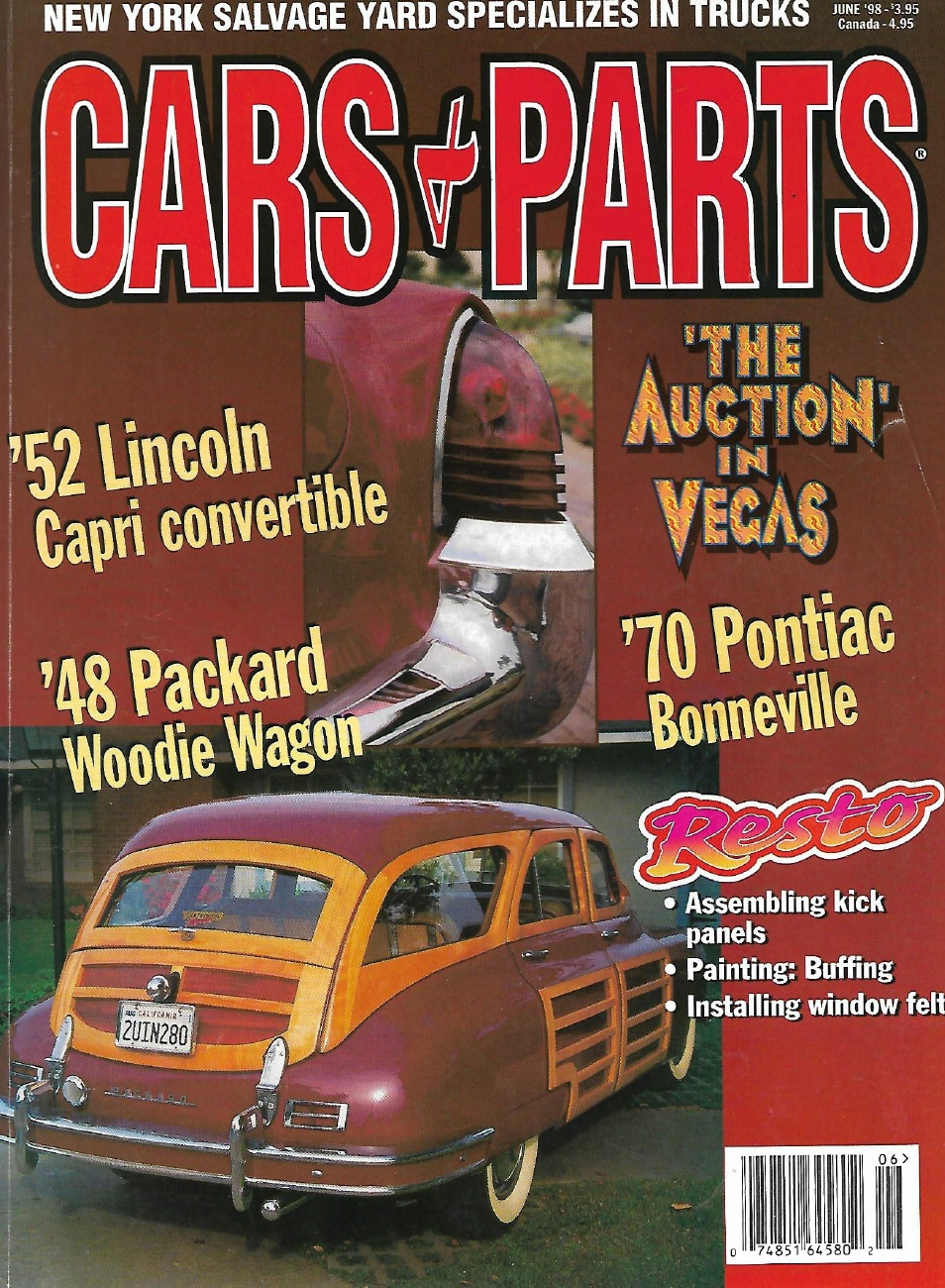CARS & PARTS 1998 JUNE - '52 LINCOLN CAPRI, '48 PACKARD WOODIE, '70 BONNEVILLE