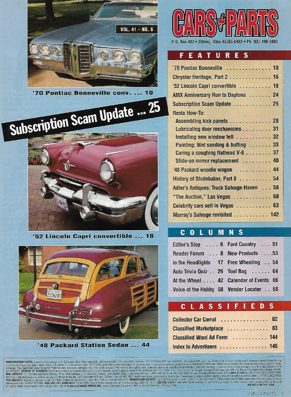 Reviews CARS & PARTS 1998 JUNE - '52 LINCOLN CAPRI, '48 PACKARD WOODIE, '70 BONNEVILLE