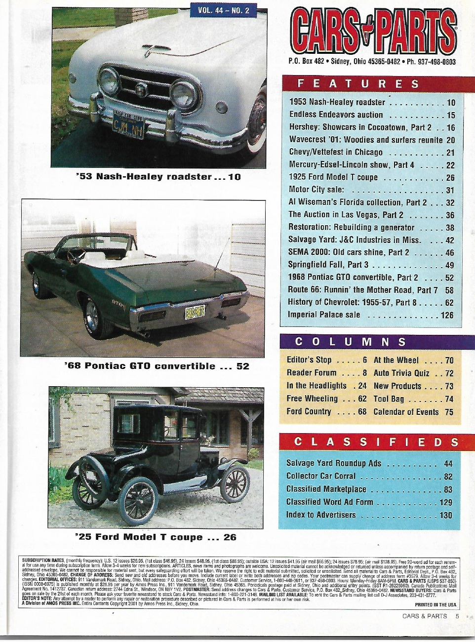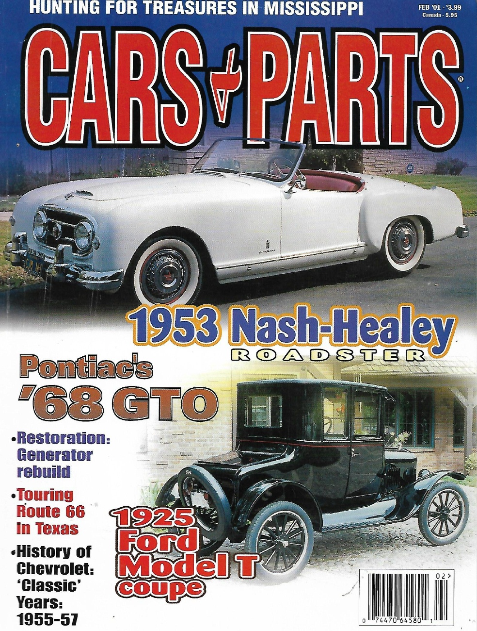 Reviews CARS & PARTS 2001 FEB - '53 NASH-HEALEY, '68 GTO,'25 MODEL T COUPE, RT 66 TEXAS