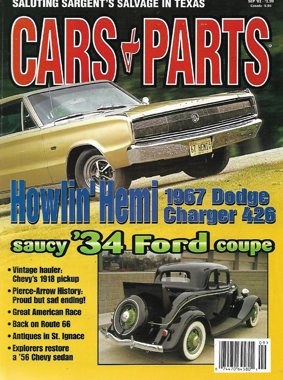 Reviews CARS & PARTS 2001 SEPT - HEMI '67 DODGE CHARGER 426,'34 FORD COUPE,'18 CHEVY PU