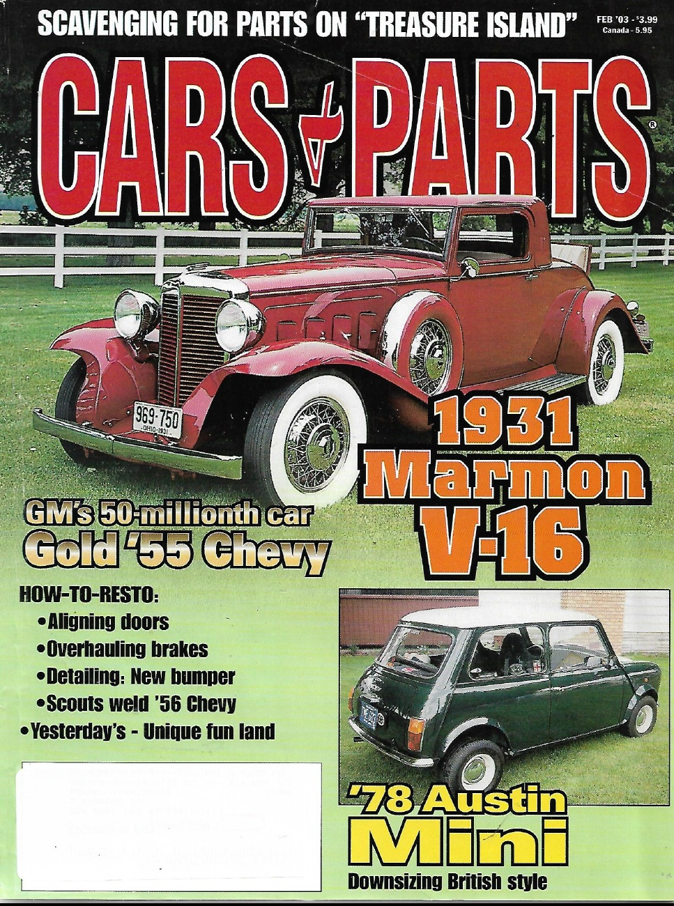 CARS & PARTS 2003 FEB - '31 MARMON V-16, 'GOLD '55 CHEVY, '78 AUSTIN MINI