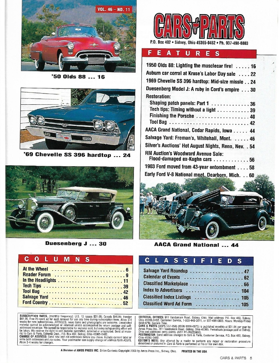 CARS & PARTS 2003 NOV - '50 OLDS ROCKET 88, '31 DUESENBERG J, '69 CHEVELLE SS