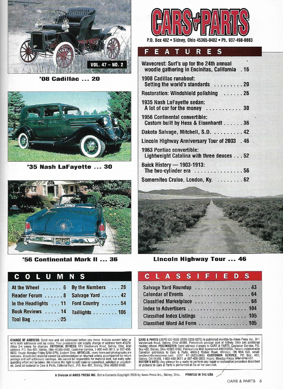 Reviews CARS & PARTS 2004 FEB - '56 CONTINENTAL MARK II CONV, '35 NASH LAFAYETTE