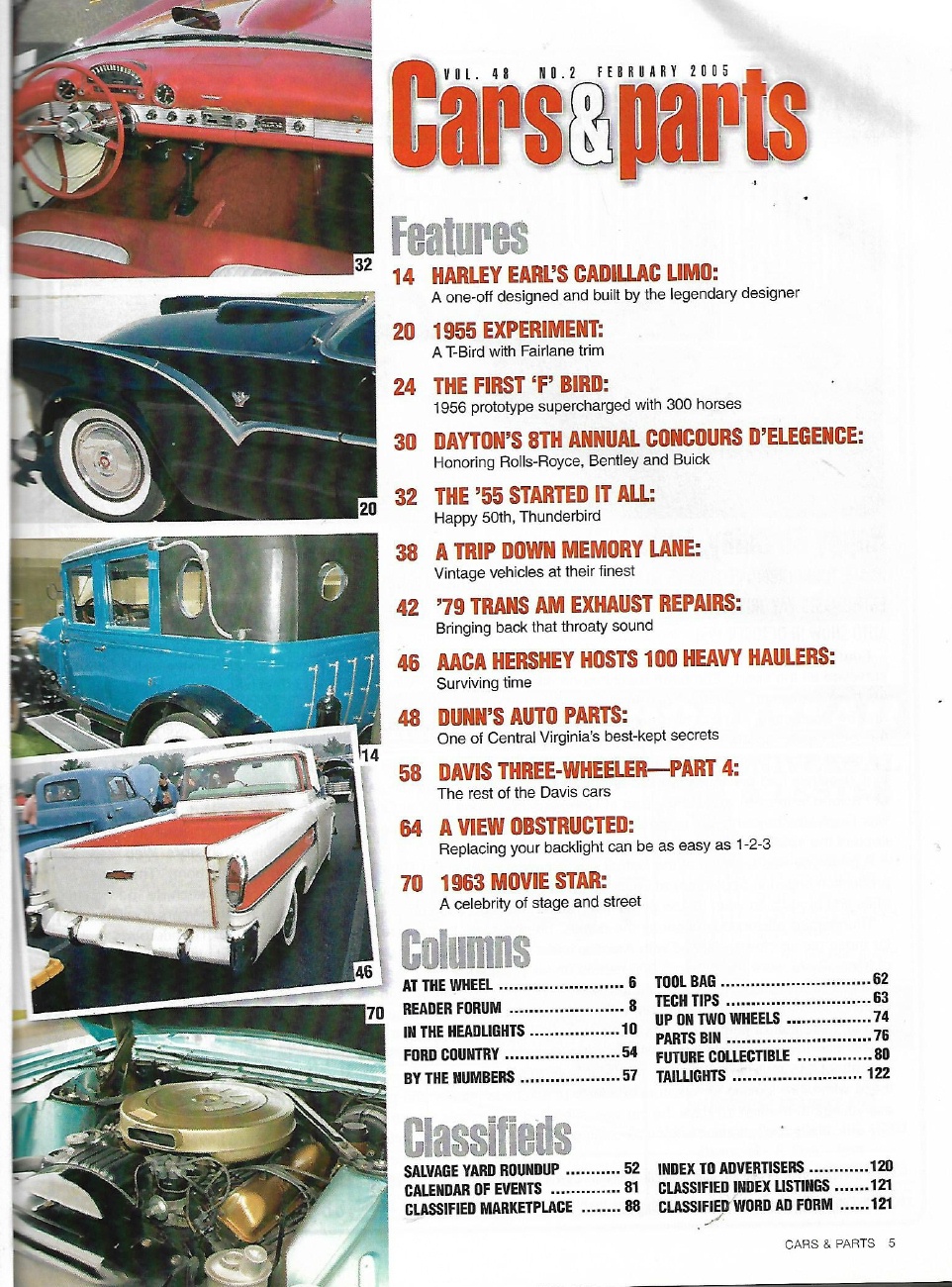 Reviews CARS & PARTS 2005 FEB - '55 THUNDERBIRD, '63 T-BIRDS, HARLEY EARL'S CADDY