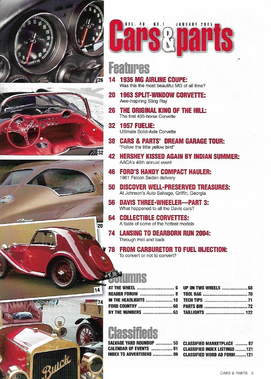 Reviews CARS & PARTS 2005 JAN - '63 SPLIT WINDOW, '57 FULIE, '67 435, '61 FALCON SEDAN