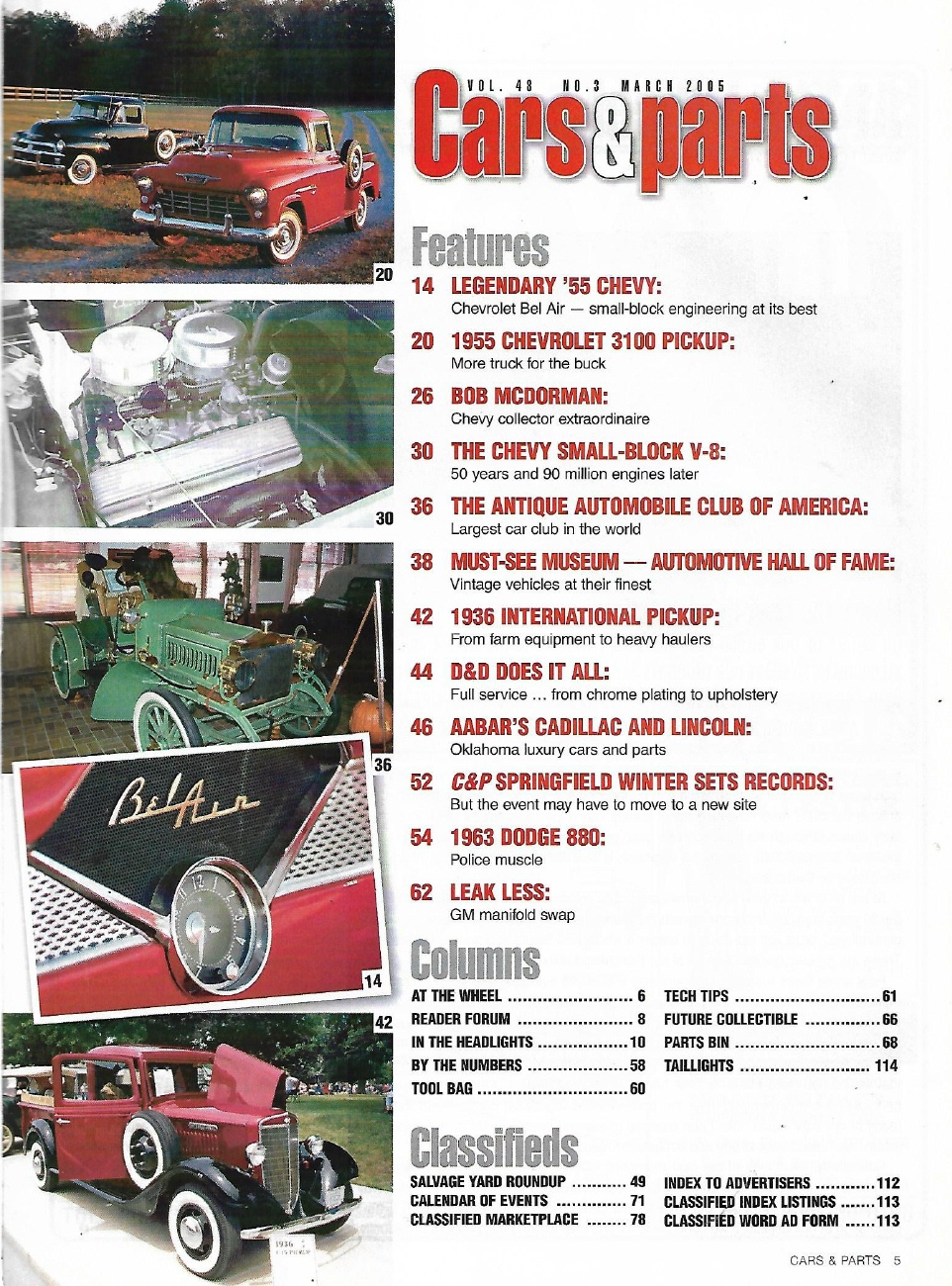 Reviews CARS & PARTS 2005 MAR - '55 BEL AIR, '55 CHEVY 3100 PU, HIST V-8, CHEVY MOUSE