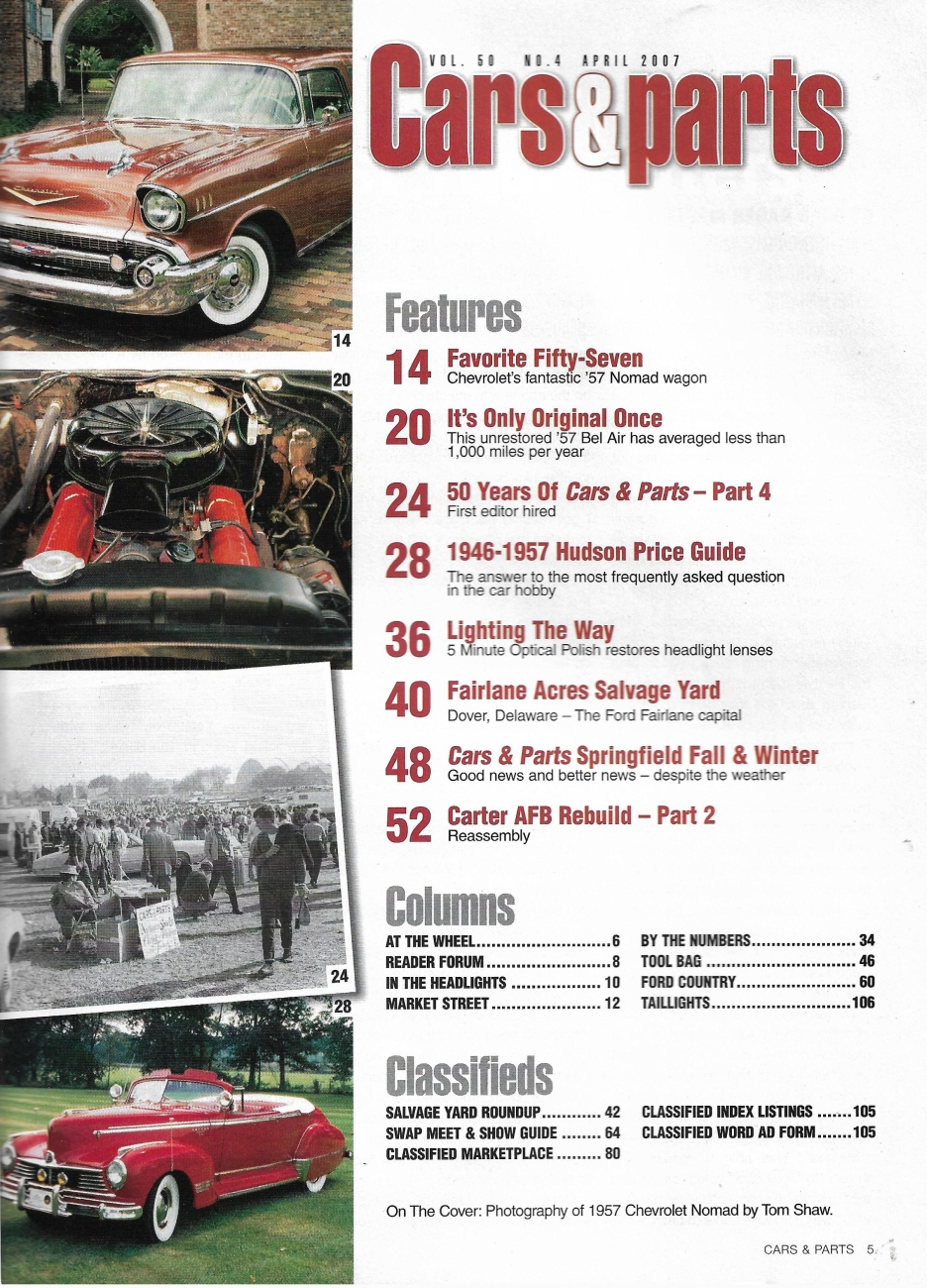 Reviews CARS & PARTS 2007 APR - '57 CHEVY 50 YEARS, '45-57 HUDSON, '57 NOMAD WAGON