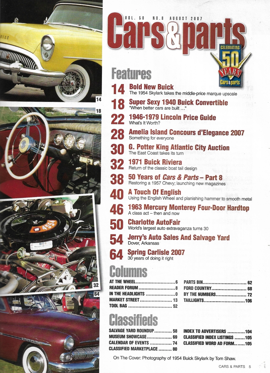 Reviews CARS & PARTS 2007 AUG - BUICKS: '54 SKYLARK,71 RIVIERA, '40 CONV, ENGLISH WHEEL