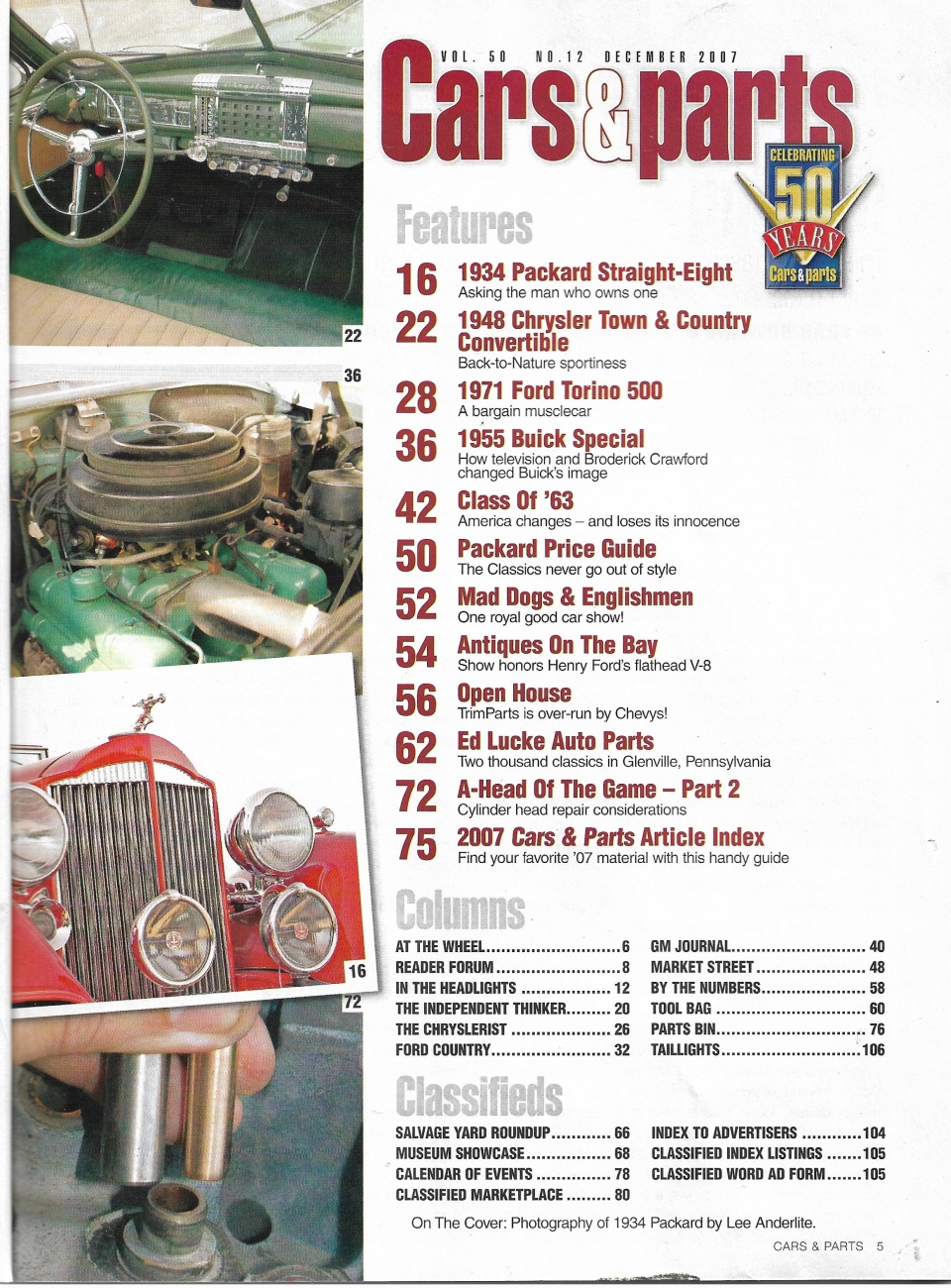 Reviews CARS & PARTS 2007 DEC - '34 PACKARD, '48 TOWN & COUNTRY, '55 BUICK SPECIAL