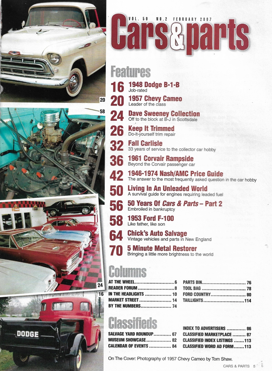 Reviews CARS & PARTS 2007 FEB - METAL TRIM RESTO, PICKUPS, '53 F100,61 CORVAIR RAMPSIDE