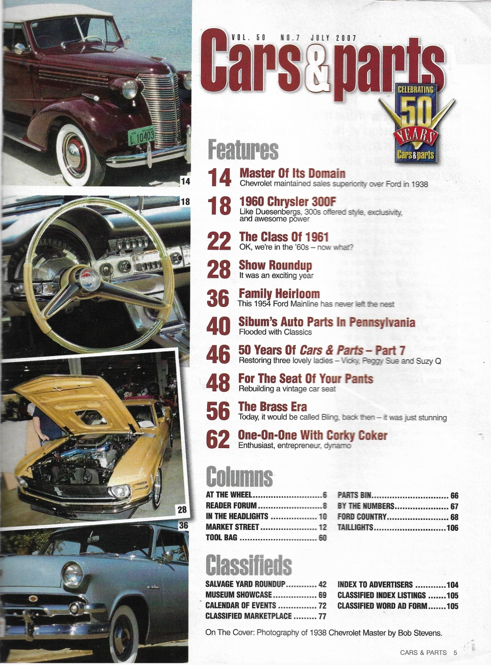 Reviews CARS & PARTS 2007 JULY - '38 CHEVY MASTER CONV, '60 CHRYSLER 300F, '54 MAINLINE