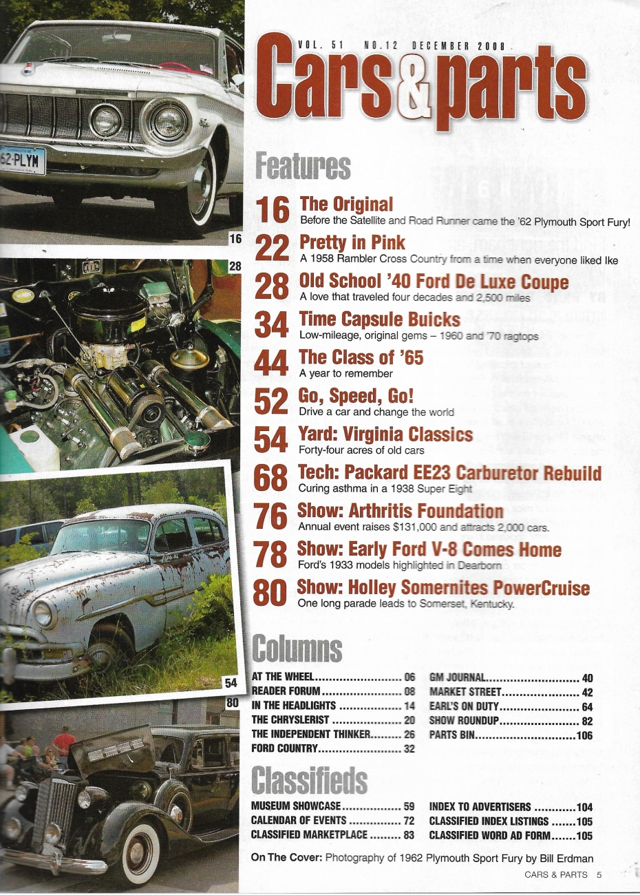 Reviews CARS & PARTS 2008 DEC - '40 FORD DE LUXE COUPE, '58 RAMBLER, '60&70 BUICKS