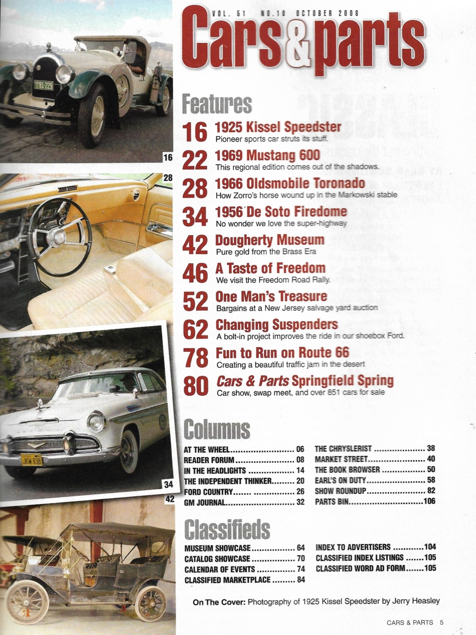Reviews CARS & PARTS 2008 OCT - '25 KISSEL SPEEDSTER, '69 MUSTANG 600, '66 TORONADO