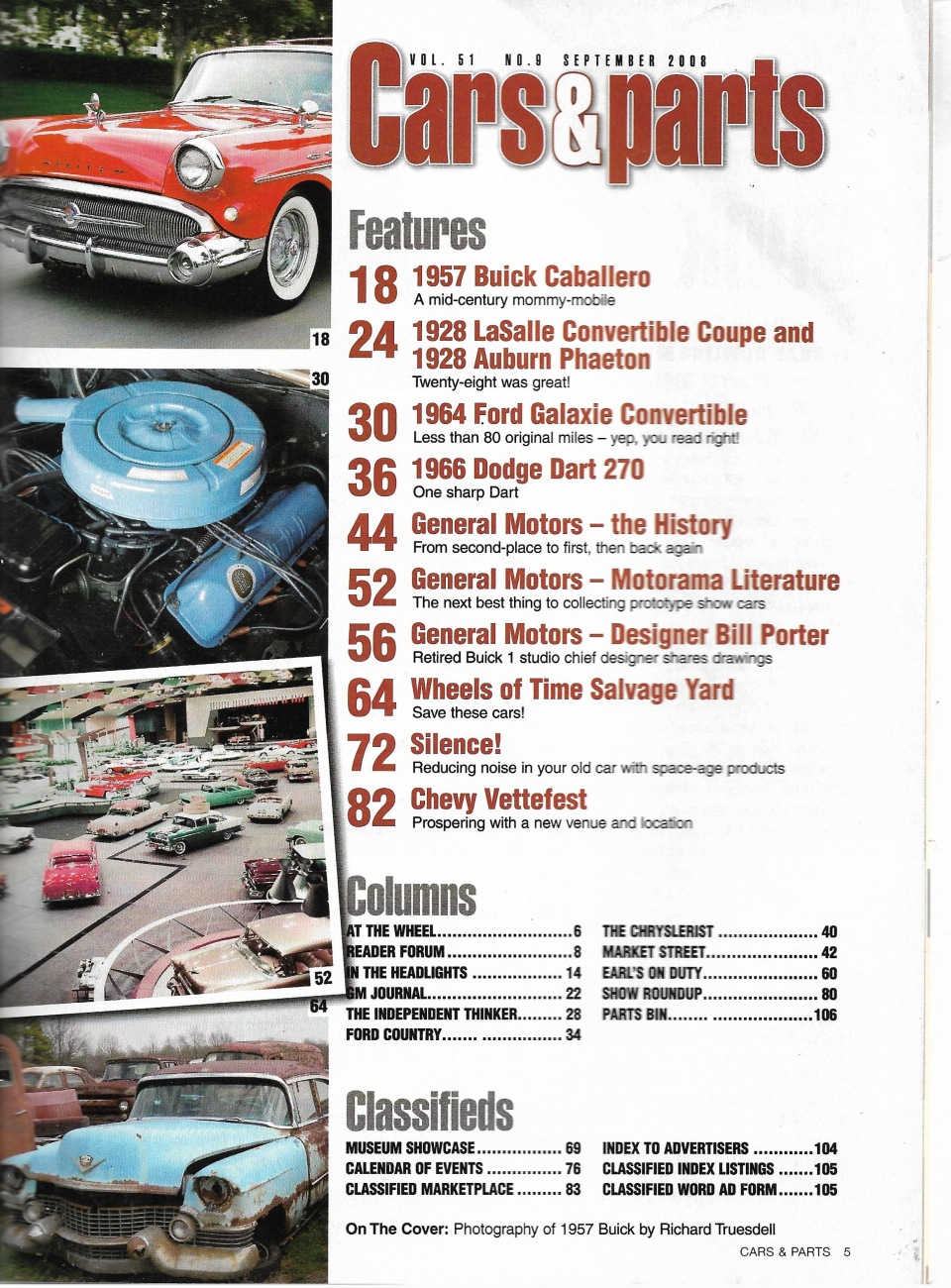 Reviews CARS & PARTS 2008 SEPT - '57 CABALLERO WAGON, '66 DODGE DART, '28 LASALLE