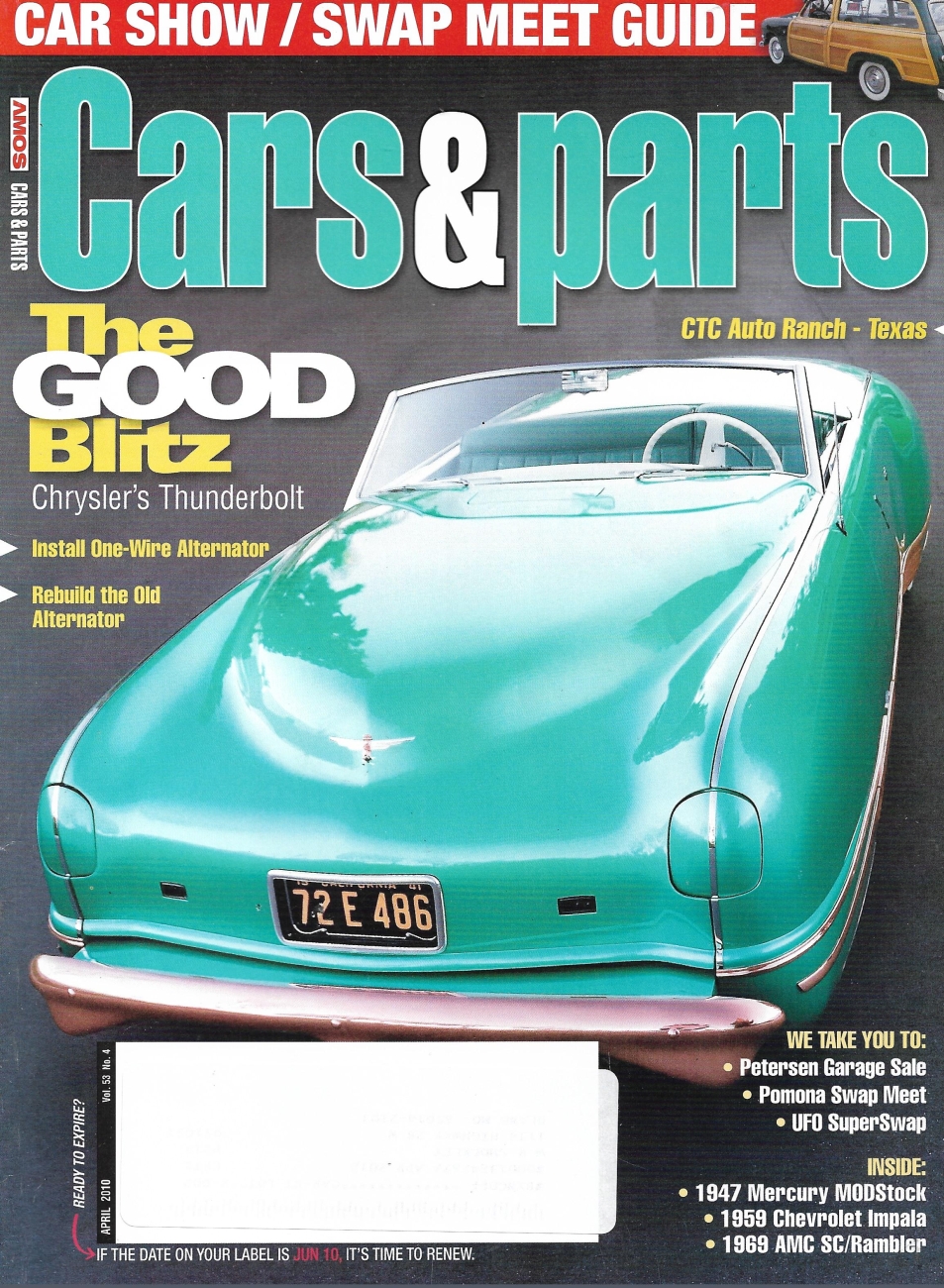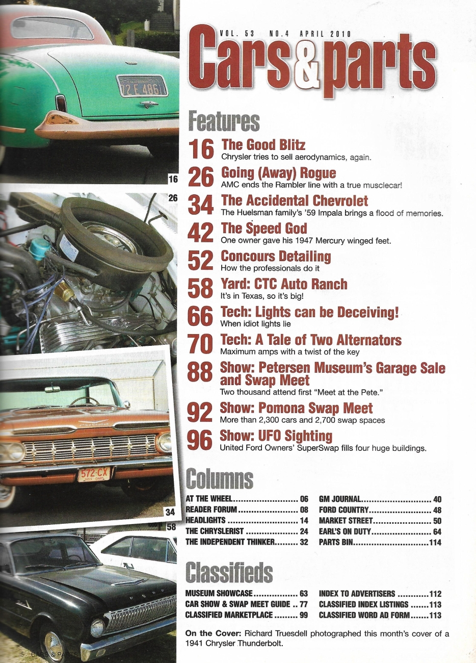 Reviews CARS & PARTS 2010 APR - CHRYSLER'S THUNDERBOLT, '47 MERC MODSTOCK, '59 IMPALA