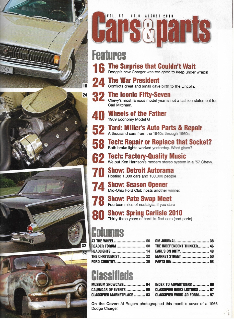 Reviews CARS & PARTS 2010 AUG - '66 CHARGER, '48 LINCOLN CONTINENTAL, '57 BEL AIR