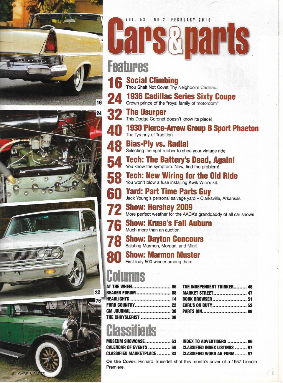 Reviews CARS & PARTS 2010 FEB - '57 LINCOLN PREMIERE, '30 PIERCE ARROW, '36 CADILLAC 60