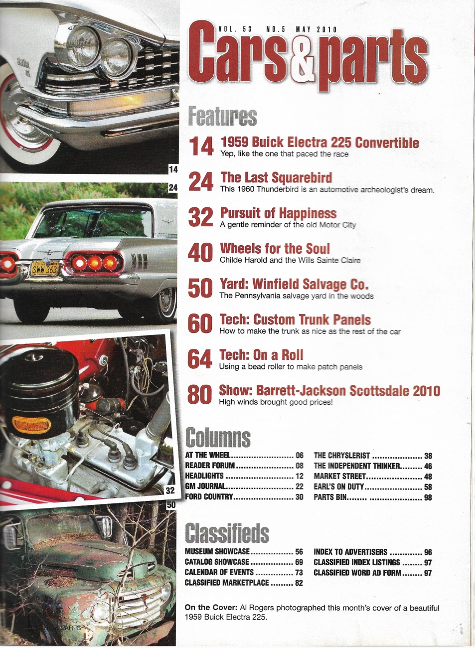 Reviews CARS & PARTS 2010 MAY - '59 BUICK ELECTRA, '60 T-BIRD, '26 WILL STE CLAIRE