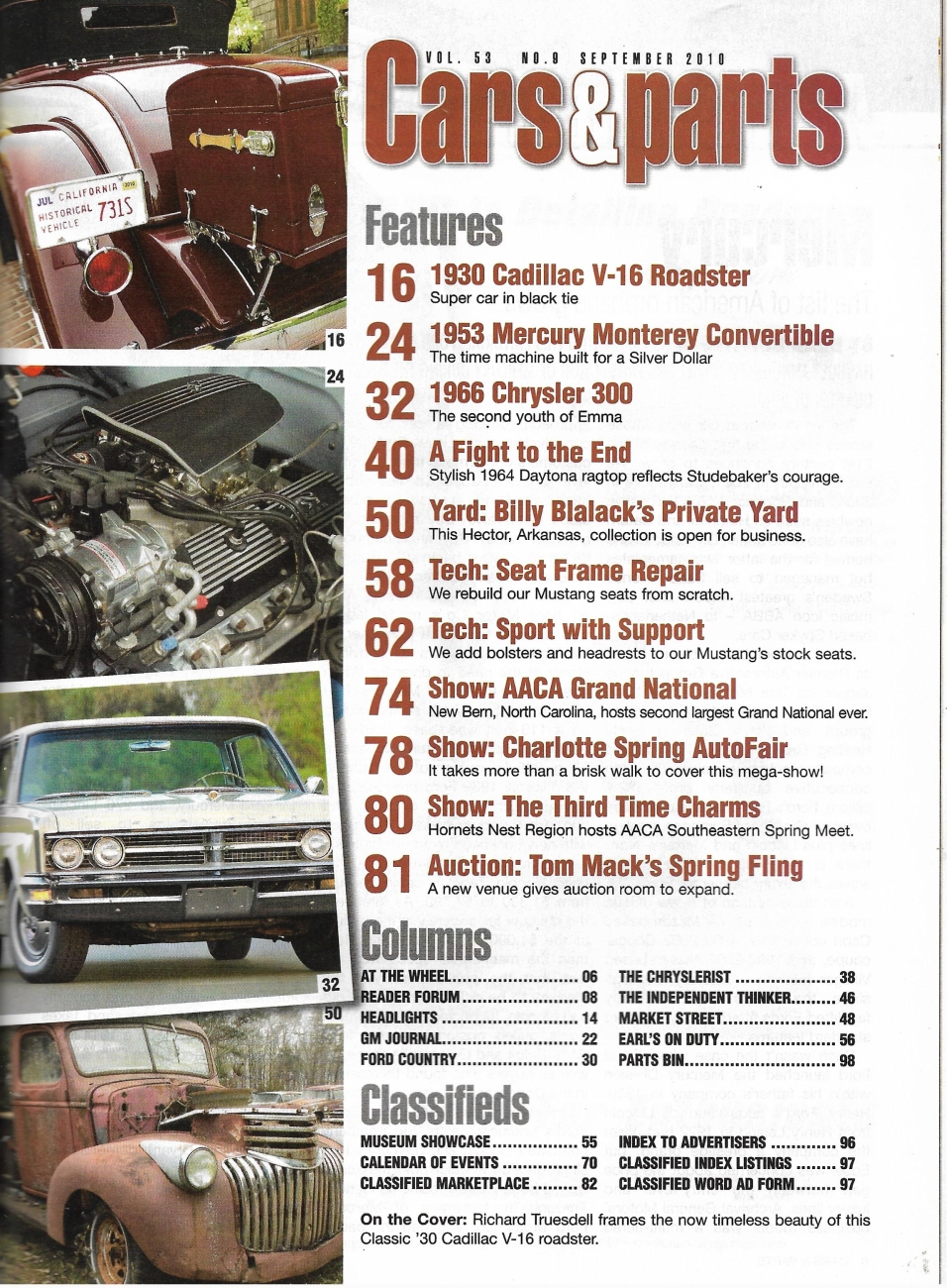 Reviews CARS & PARTS 2010 SEPT - 30 CADILLAC V-16, '53 MERC, '64 STUDE DAYTONA, '66 300