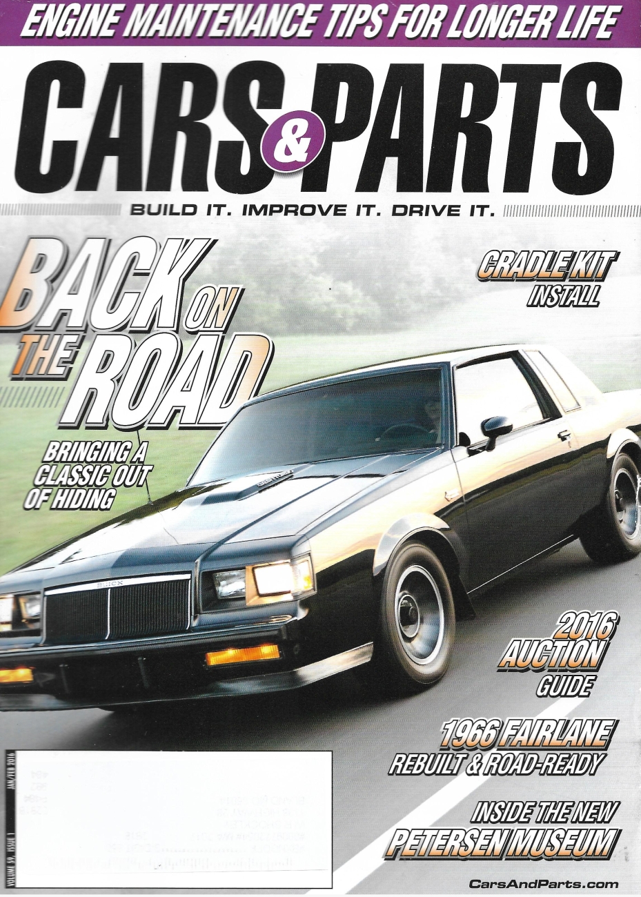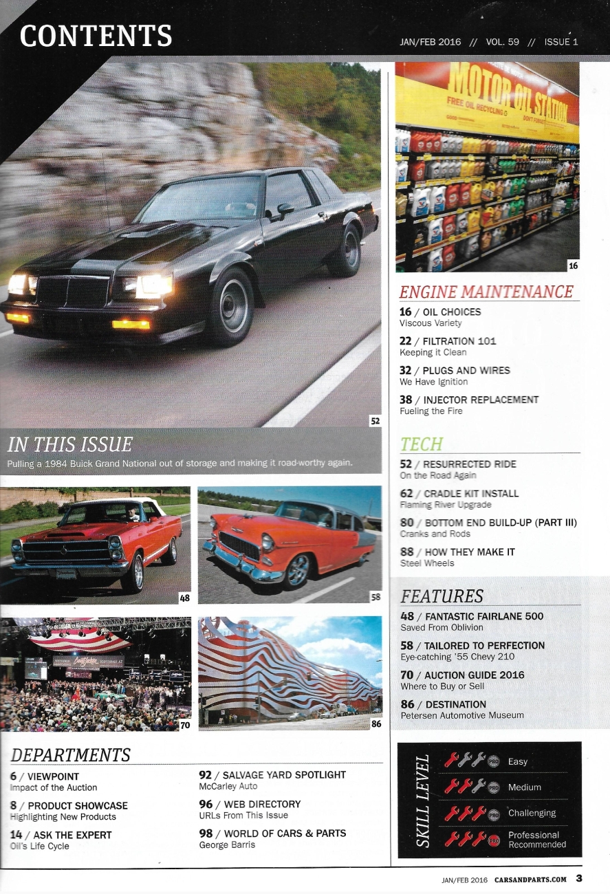 Reviews CARS & PARTS 2016 JAN/FEB - '66 FAIRLANE REBUILT, PETERSEN MUSEUM, CRADLE KIT