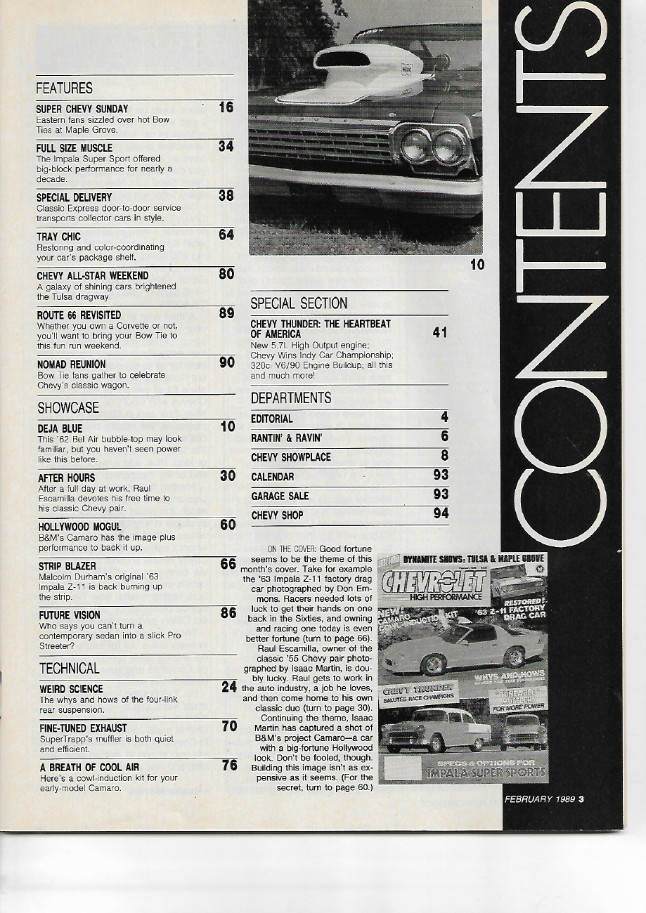 Reviews CHEVROLET HIGH PERFORMANCE 1989 FEB - 4-LINK REAR SUSP, TUNEABLE MUFFLERS,