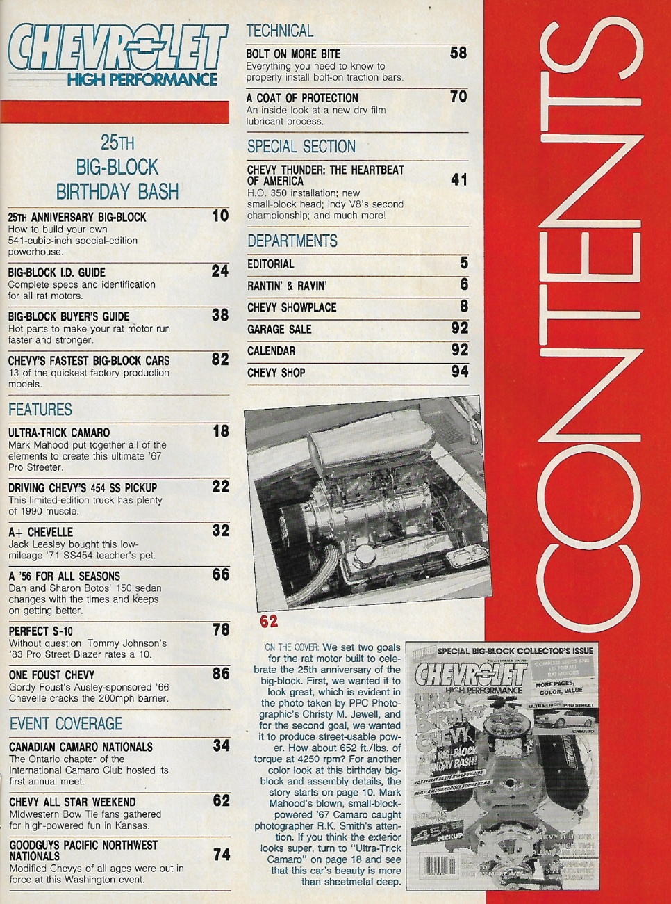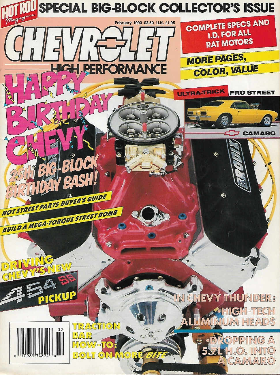 CHEVROLET HIGH PERFORMANCE 1990 FEB - 454 SS PICKUP, 5.7L HO INTO A CAMARO