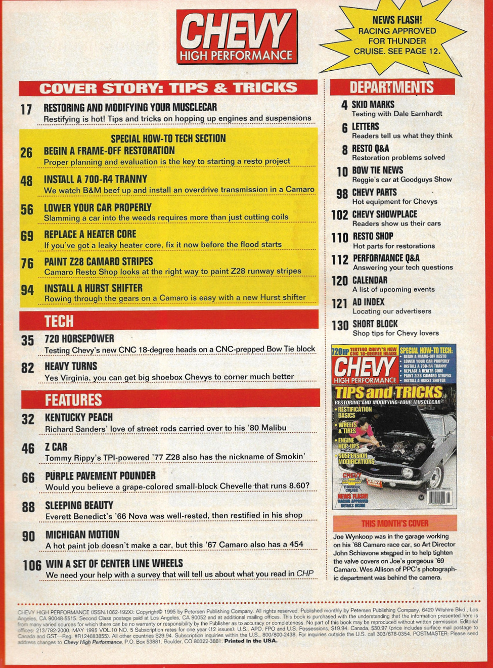 Reviews CHEVY HIGH PERFORMANCE 1995 MAY - LOWERING, 700-R4 TAINNY, HEATER CORE, STRIPES