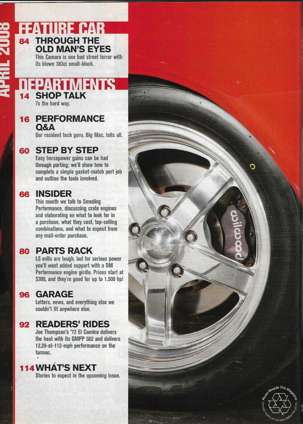 Reviews CHEVY HIGH PERFORMANCE 2008 APR - BOLT-ONS DYNO TESTED, OIL PANS, DISC BRAKES