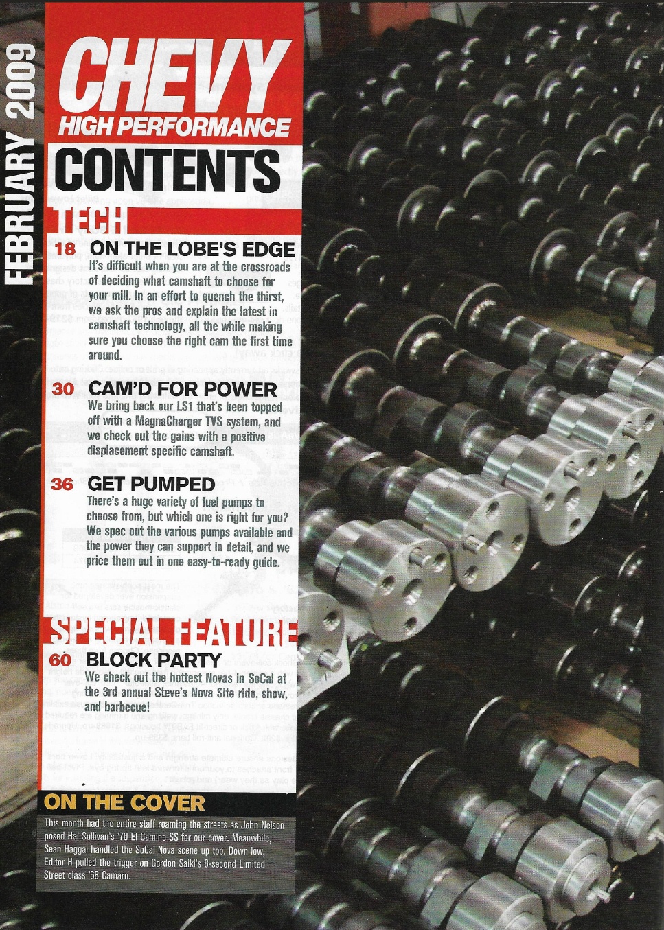 Reviews CHEVY HIGH PERFORMANCE 2009 FEB - LSX CAMS, FUEL PUMPS, NOVAS, 8'S - 360CI