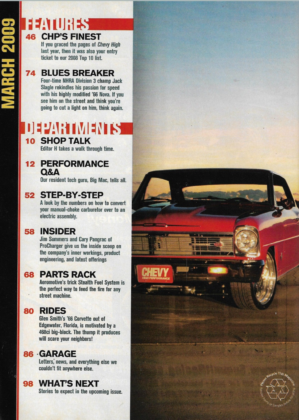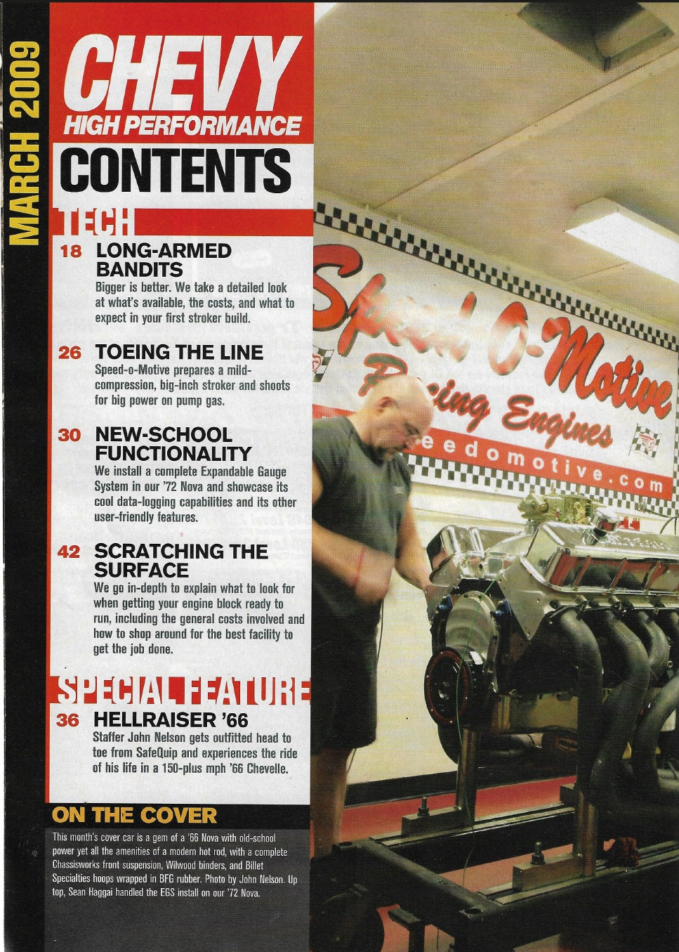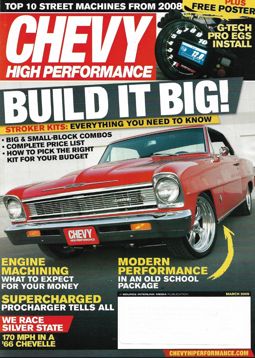 Reviews CHEVY HIGH PERFORMANCE 2009 MAR - STOKERS, ENGINE MACH, '66 CHEVELLE, LACERATOR