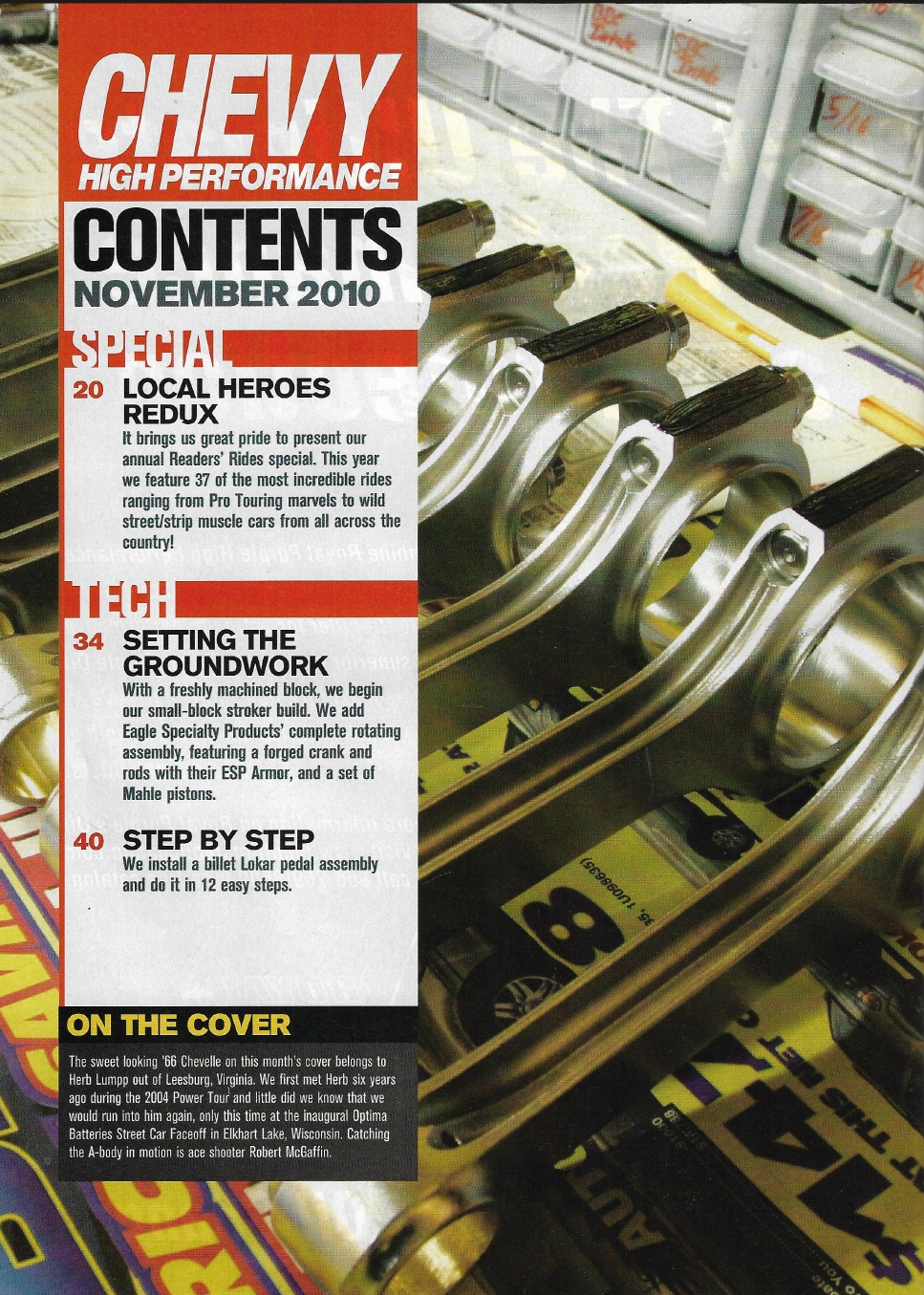 Reviews CHEVY HIGH PERFORMANCE 2010 NOV - MUSCLE CAR SHOOTOUT, OILING SYS,383CI, PEDALS