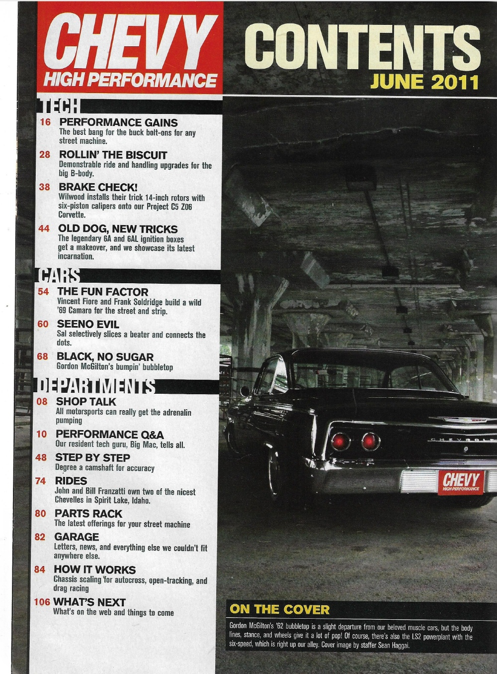 Reviews CHEVY HIGH PERFORMANCE 2011 JUNE - BOLT-ONS, LS2 6-SPEED, PROJ C5 Z06 BRAKES