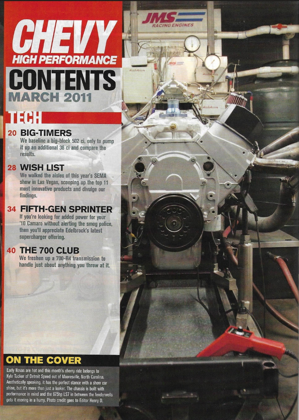 Reviews CHEVY HIGH PERFORMANCE 2011 MAR - 502ci vs 540ci, E-FORCE SUPERCHARGER, 700-R4