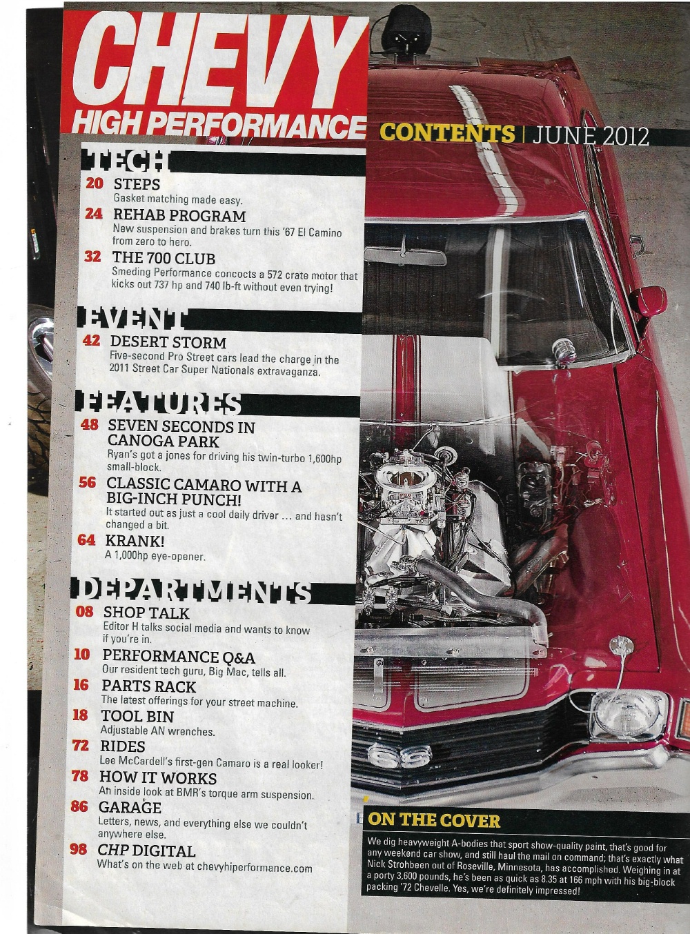 Reviews CHEVY HIGH PERFORMANCE 2012 JUNE - MAIL-ORDER 572CI, TORQUE ARM, GASKETS, NATS