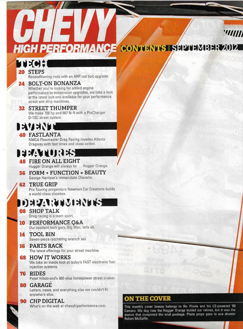 Reviews CHEVY HIGH PERFORMANCE 2012 SEPT - BOLT-ONS, SUSP, CYL HEADS, BRAKES, LS3 SUPER