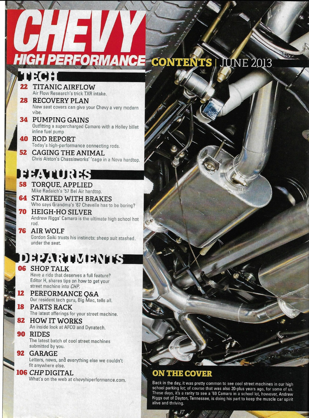 Reviews CHEVY HIGH PERFORMANCE 2013 JUNE - '57 BEL AIR, '67 CHEVELLE, RIGGS' CAMARO